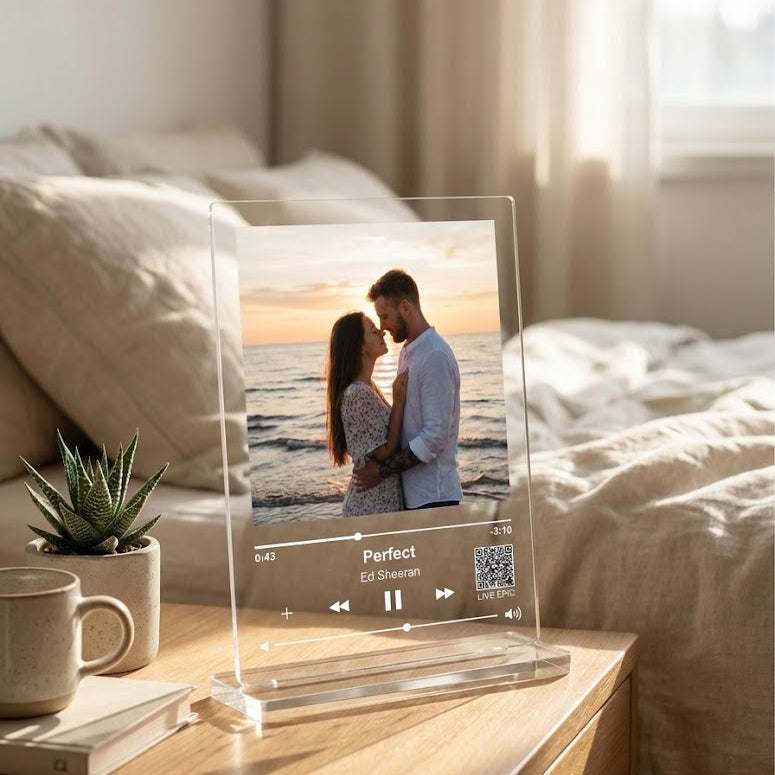 תמונת אקריליק יוקרתית עיצוב מיוזיק עם מעמד וסריקה מקורית של סרטון עם שיר מרגש.